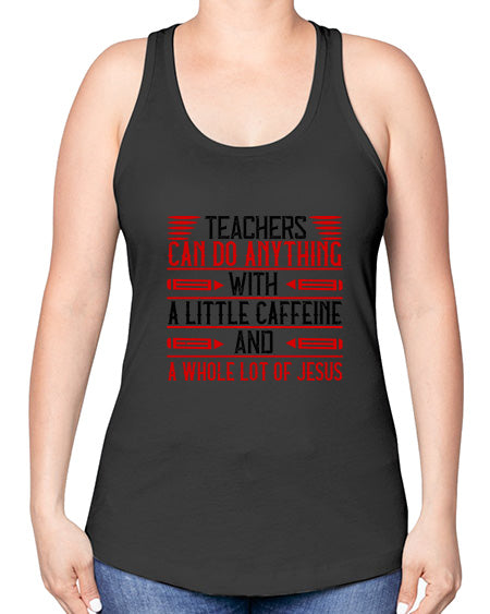 Teachers Can Do Anything With A Little Caffeine And A Whole Lot Of Jesus Style 1472# - teacher -Racerback Tank