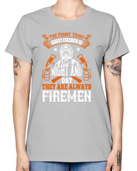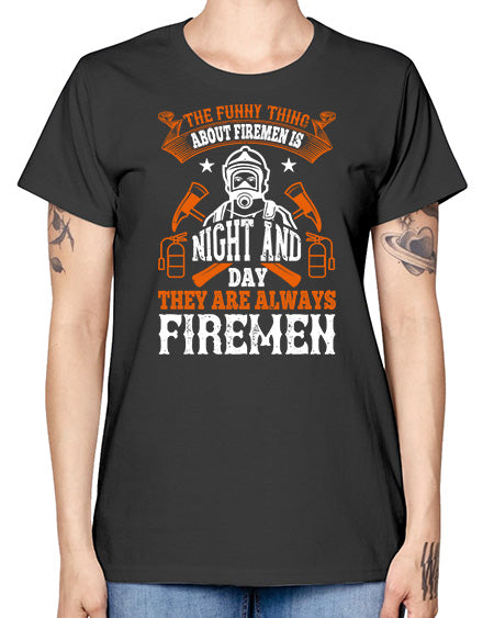 The funny thing about firemen is night and day they are always firemen Style 1512# - fire fighter - Missy T-Shirt