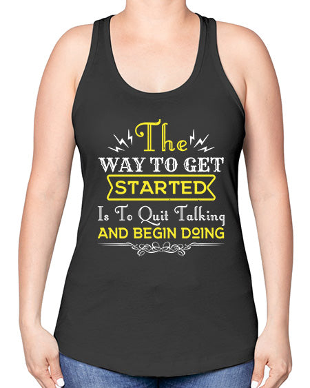 The way to get started is to quit talking and begin doing525# - entrepeuner -Racerback Tank