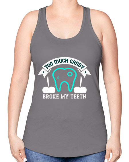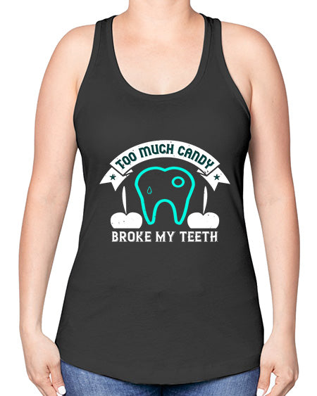 Too much candy broke my teeth Style 442# - dentist -Racerback Tank