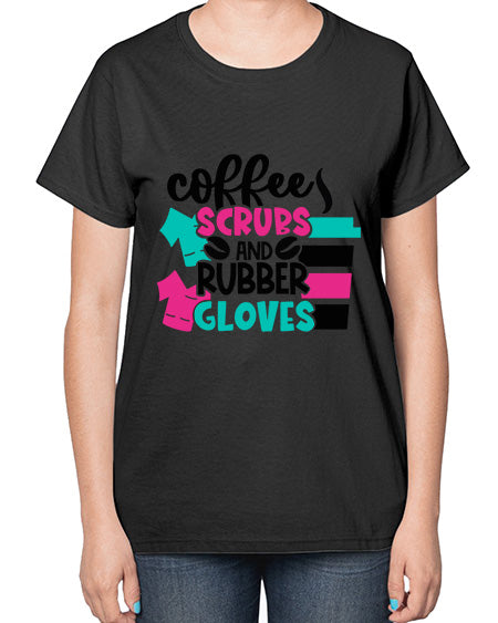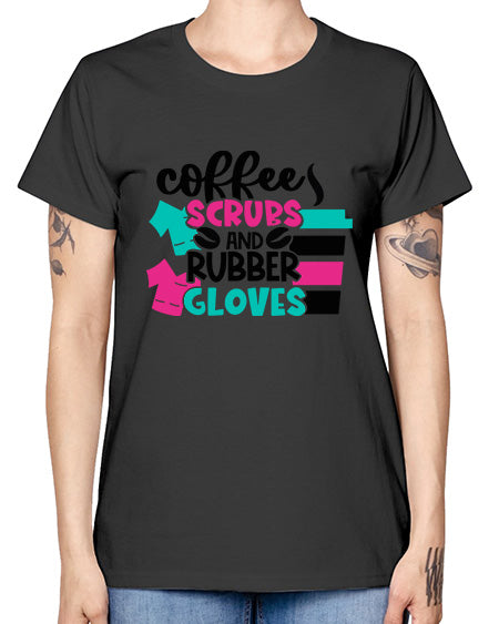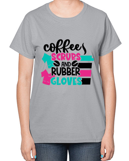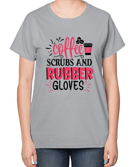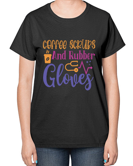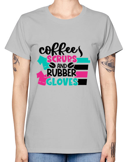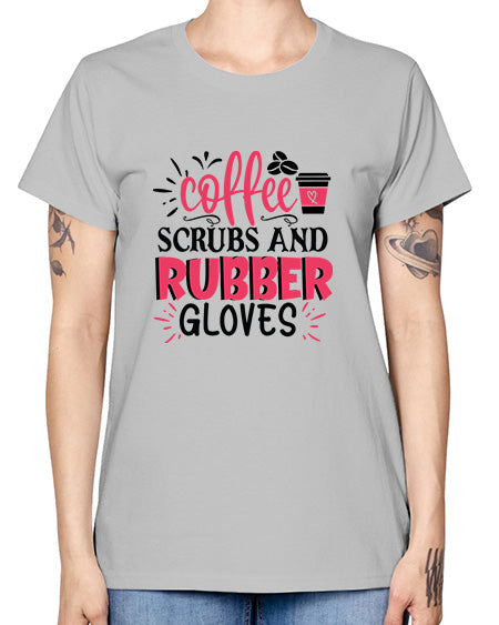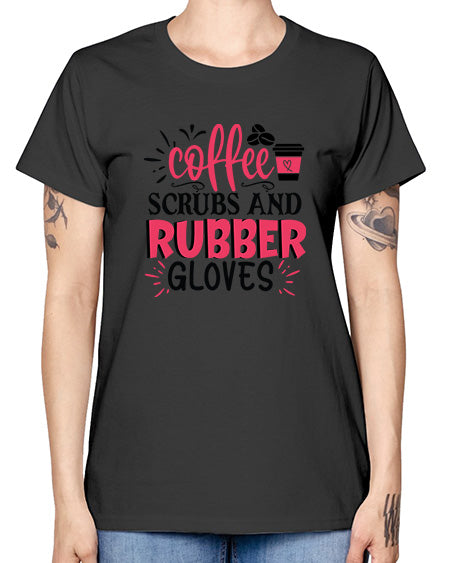 coffee scrubs and rubber gloves Style 663# - nurse- Ladies T-Shirt