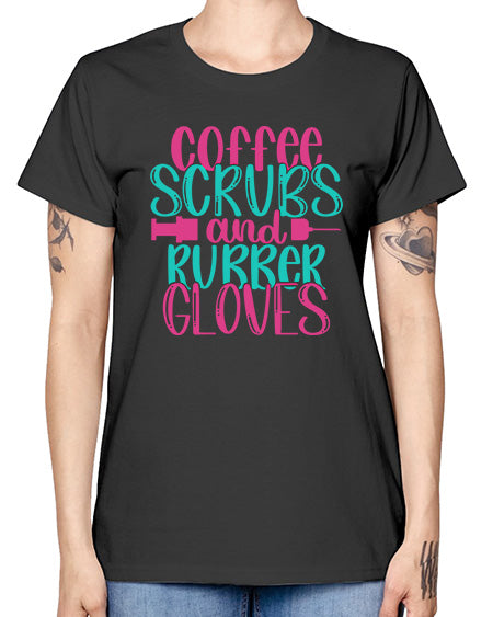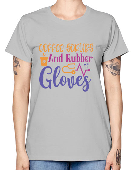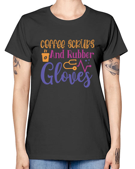 coffee scrubs and rubber gloves Style Style 666# - nurse- Ladies T-Shirt