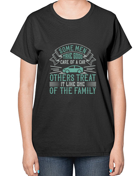Some men take good care of a car others treat it like one of the family 64# - car- Ladies T-Shirt