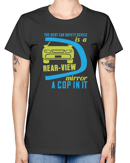 The best car safety device is a rearview mirror with a cop in it 67# - car- Ladies T-Shirt