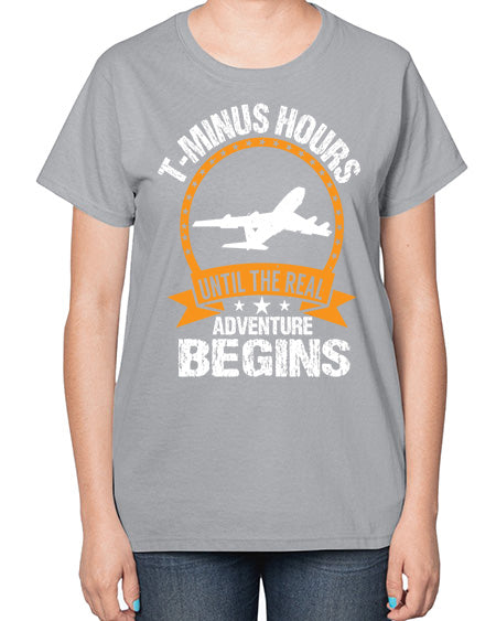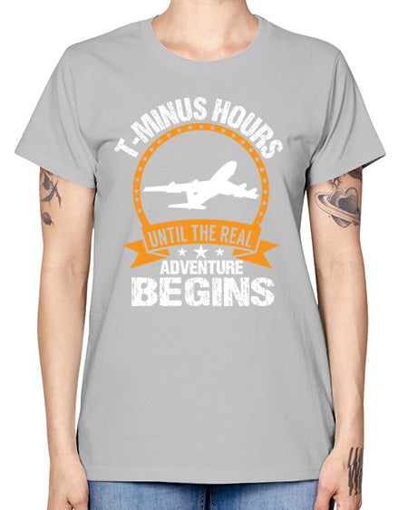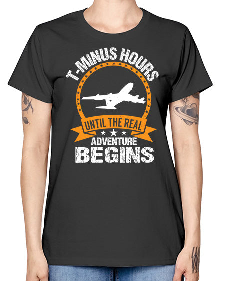 tminus hours until the adventure begins 45# - airplane- Ladies T-Shirt
