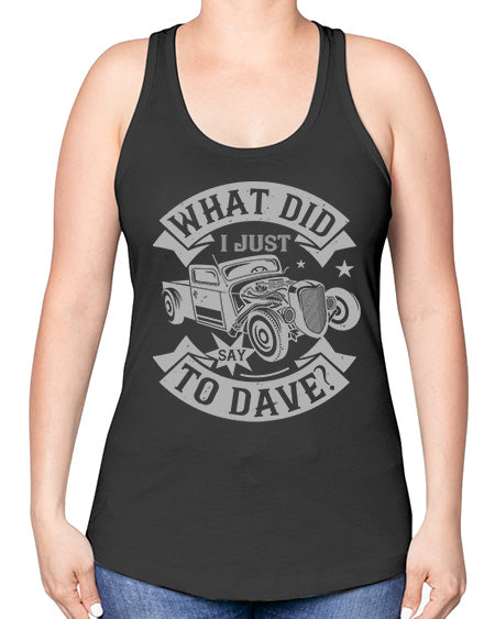What did i just say to Dave 79# - hot rod -Racerback Tank