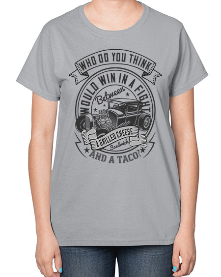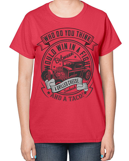 Who do you think would win in a fight between a grilled cheese and a taco 78# - hot rod- Ladies T-Shirt
