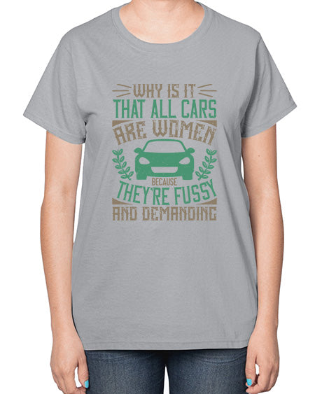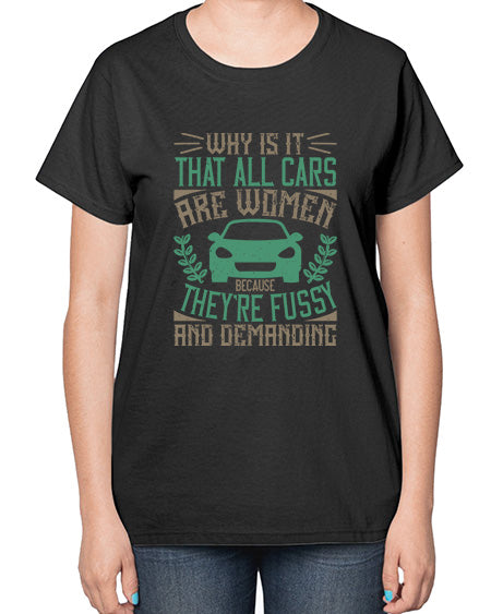 Why is it that all cars are women Because theyre fussy and demanding 96# - car- Ladies T-Shirt