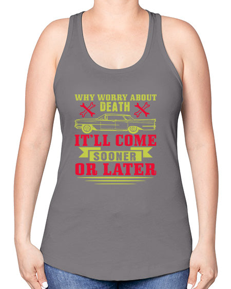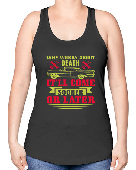 Why worry about death itll come sooner or later 89# - car -Racerback Tank