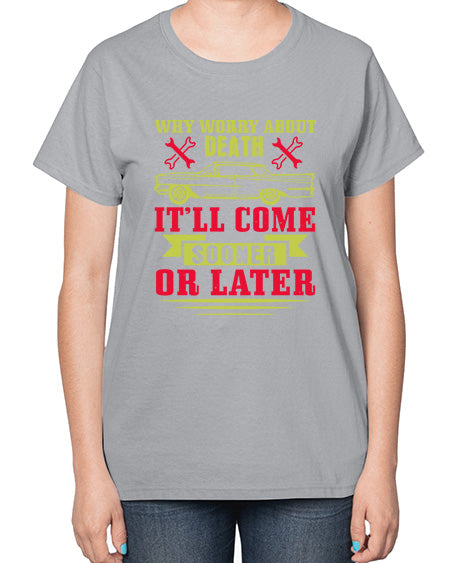 Why worry about death itll come sooner or later 89# - car- Ladies T-Shirt