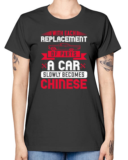 With each replacement of parts a car slowly becomes Chinese 91# - car - Missy T-Shirt