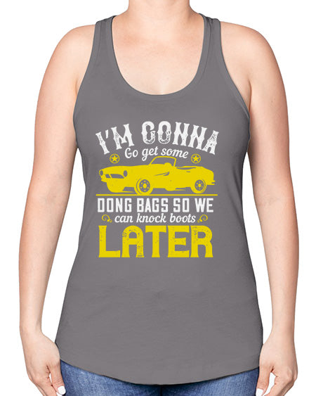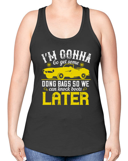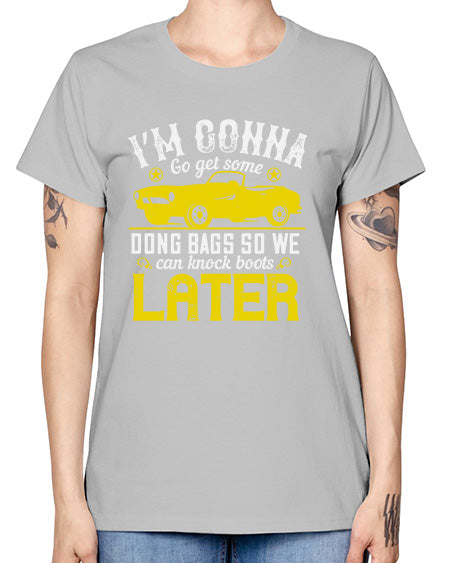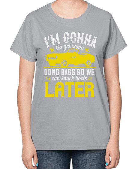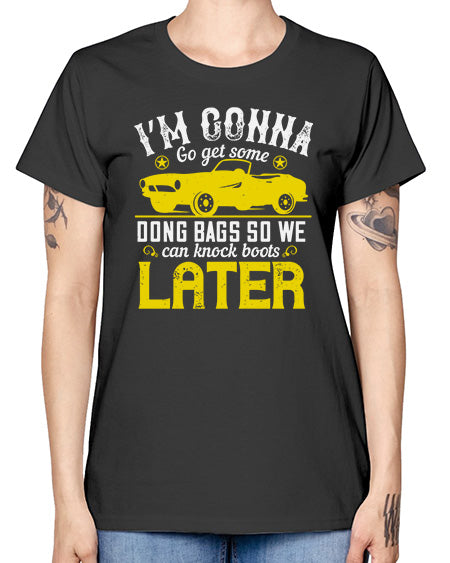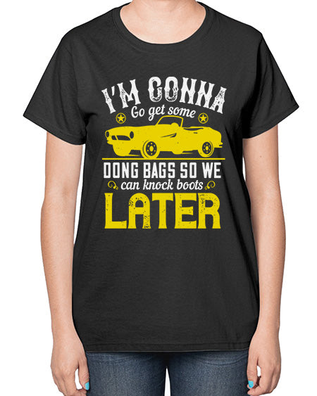 I’m gonna go get some dong bags so we can knock boots later 43# - hot rod- Ladies T-Shirt