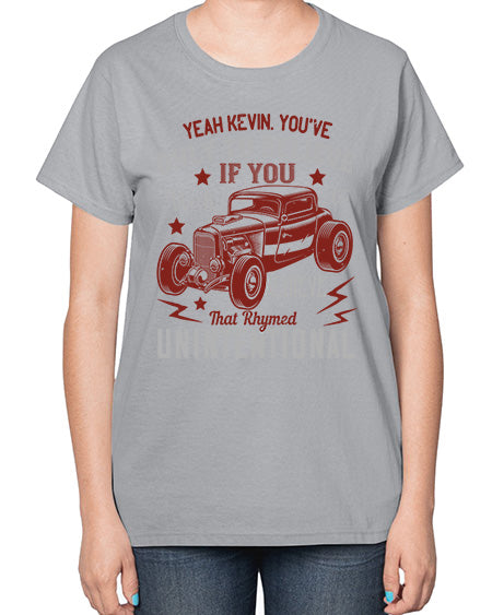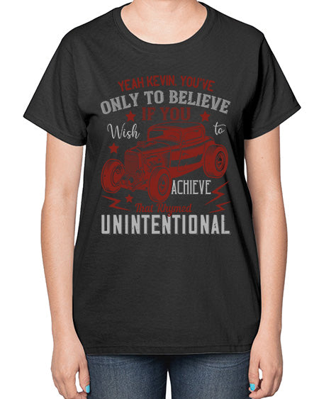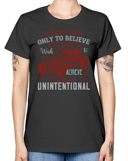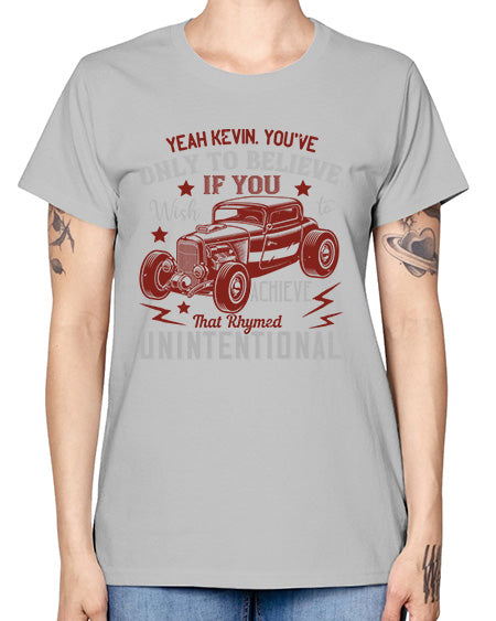 Yeah Kevin Youve only to believe if you wish to achieve That rhymed Unintentional 16# - hot rod- Ladies T-Shirt