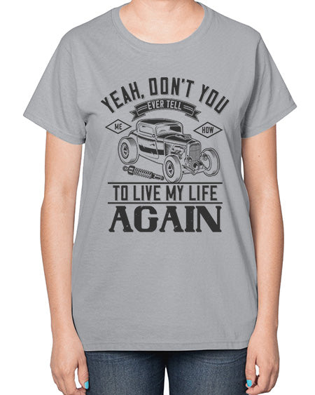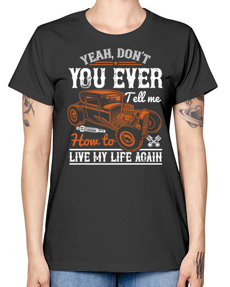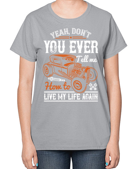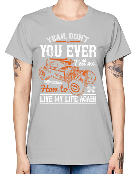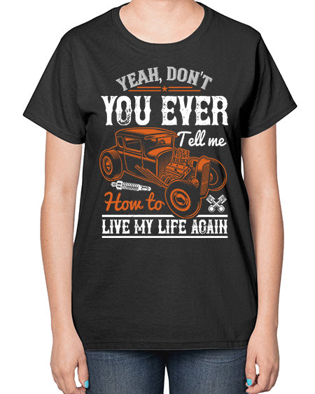 Yeah dont you EVER tell me how to live my life again 55# - hot rod- Ladies T-Shirt