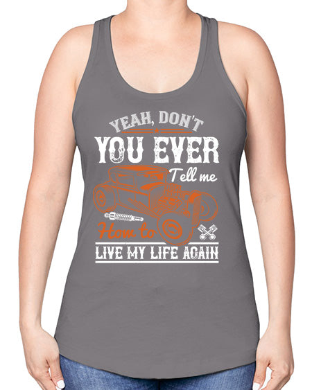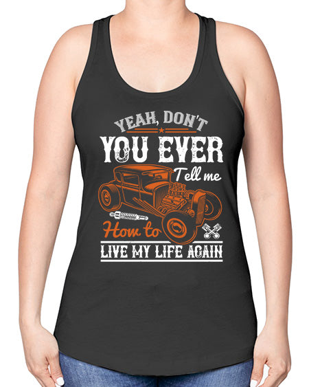Yeah dont you EVER tell me how to live my life again 55# - hot rod -Racerback Tank