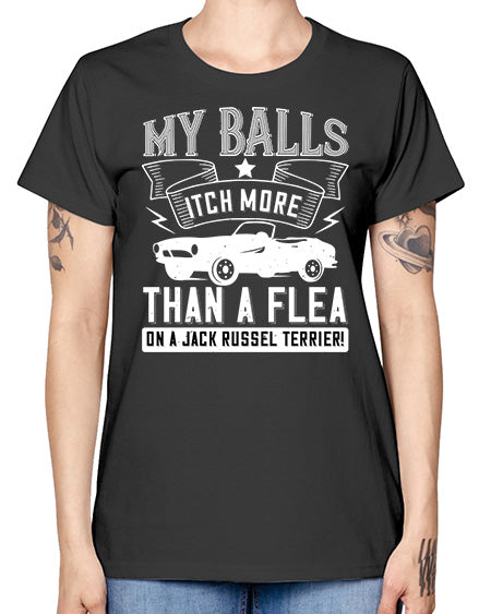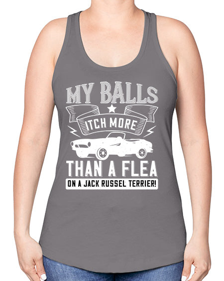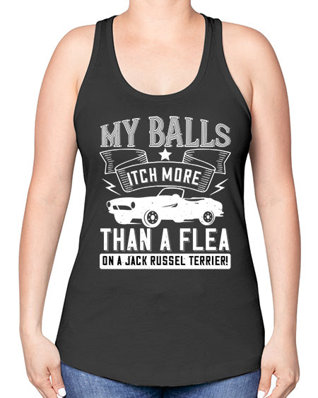 My balls itch more than a flea on a jack russel terrier 100# - hot rod -Racerback Tank