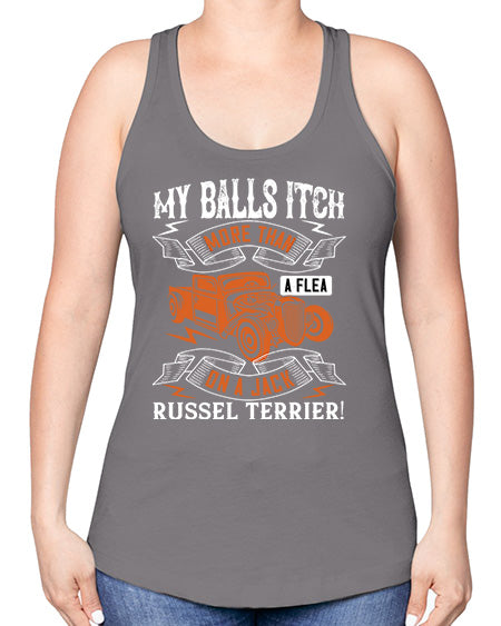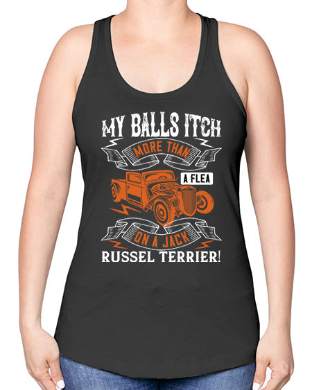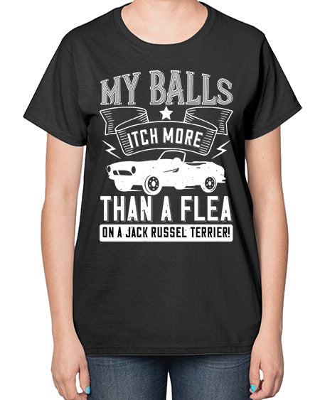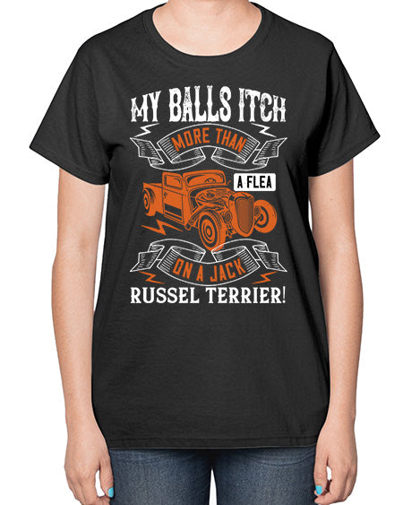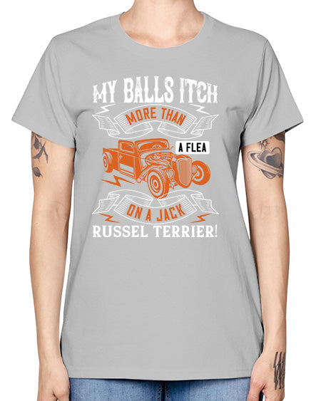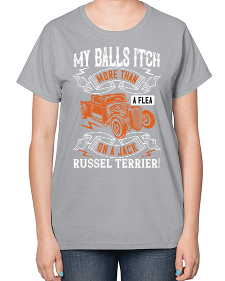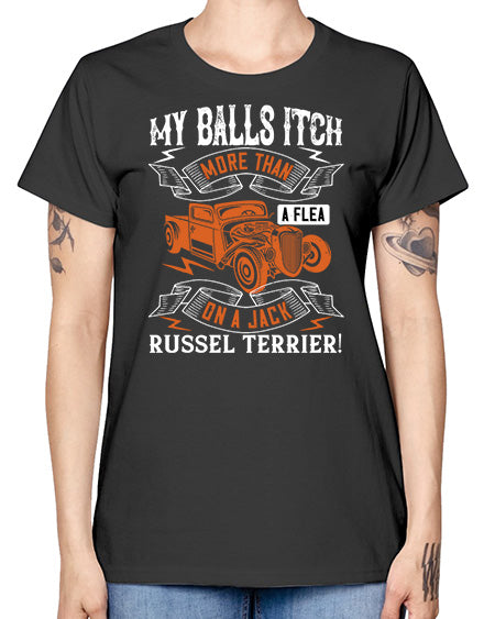 My balls itch more than a flea on a jack russel terrier 90# - hot rod- Ladies T-Shirt