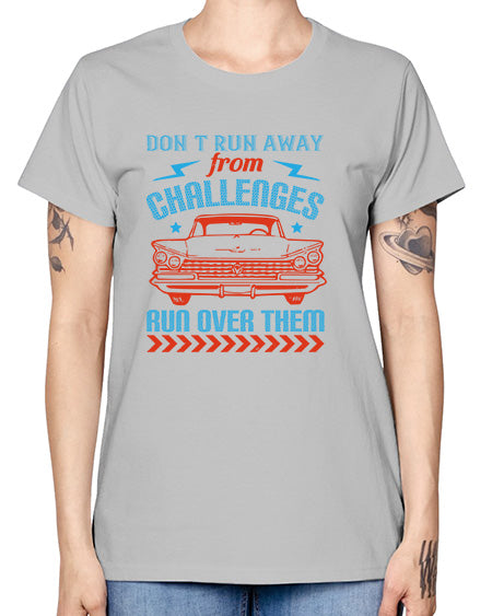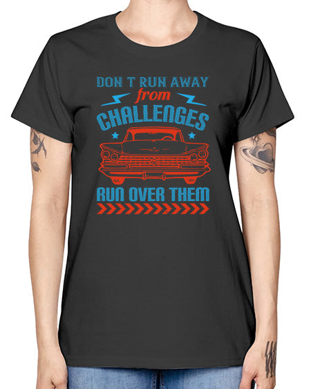 Dont run away from challenges run over them 4# - car- Ladies T-Shirt