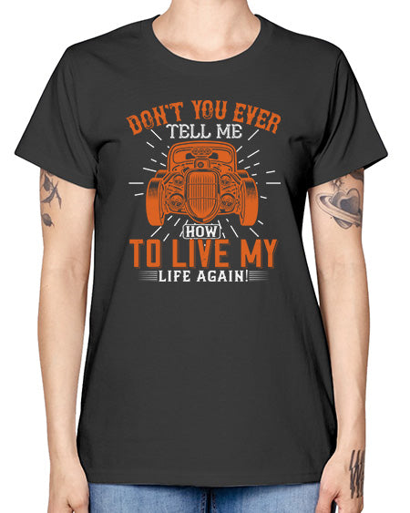 Dont you EVER tell me how to live my life again 56# - hot rod- Ladies T-Shirt