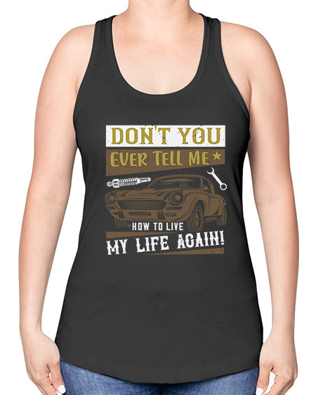 Dont you EVER try to tell me how to live my life AGAIN 107# - hot rod -Racerback Tank