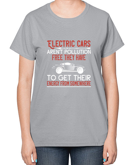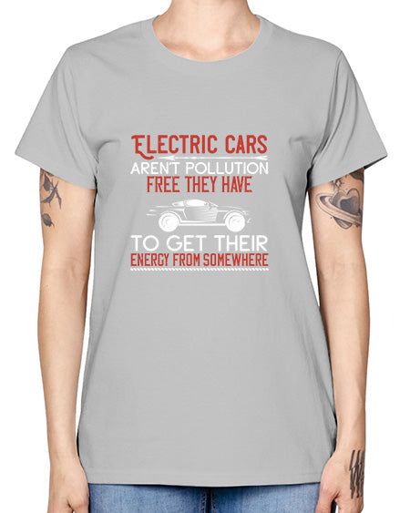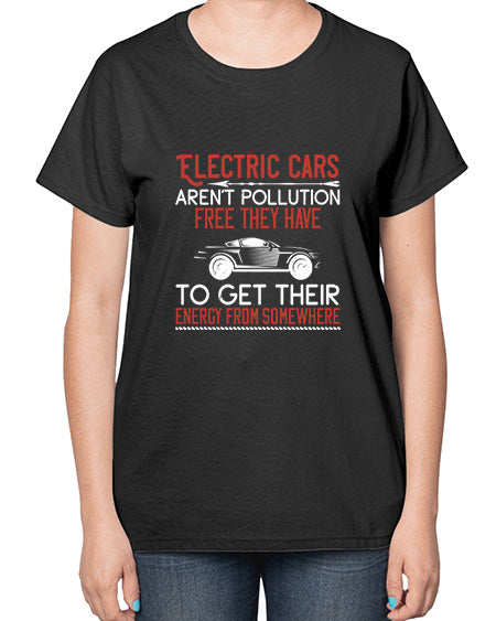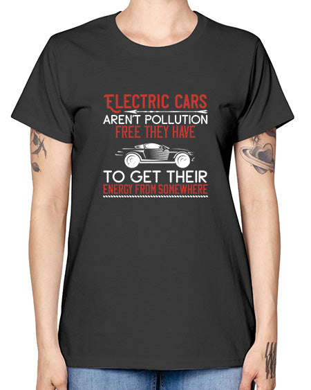 Electric cars arent pollutionfree they have to get their energy from somewhere 9# - car- Ladies T-Shirt