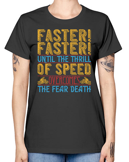 Faster faster until the thrill of speed overcomes the fear death 18# - motorcycle- Ladies T-Shirt