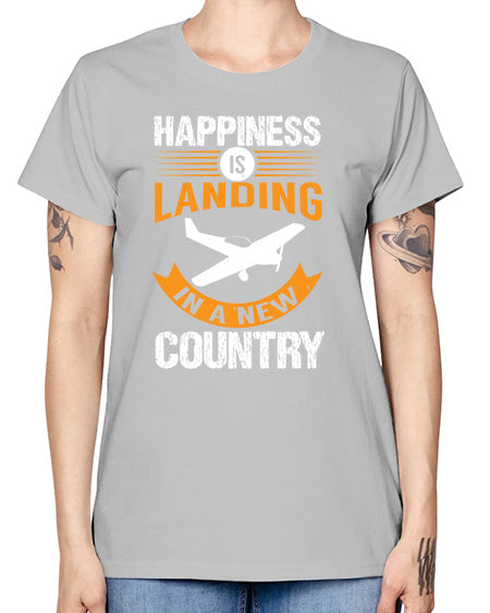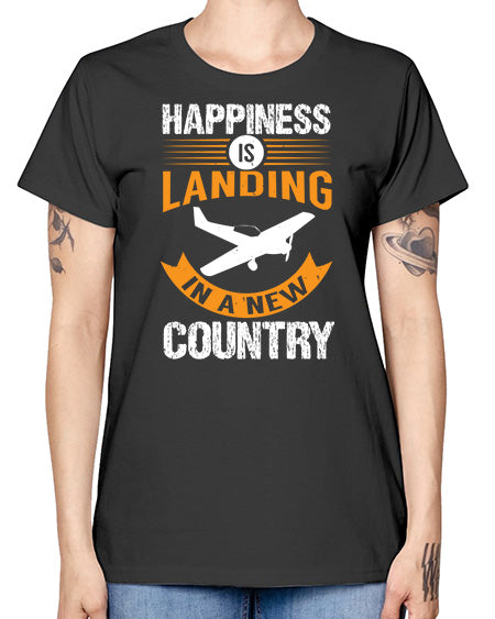 happiness is landing in a new country 16# - airplane- Ladies T-Shirt