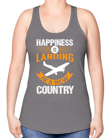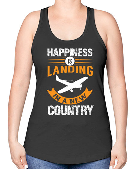 happiness is landing in a new country 16# - airplane -Racerback Tank