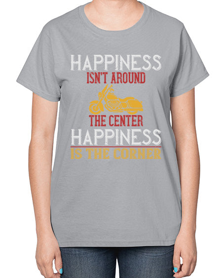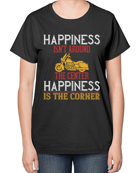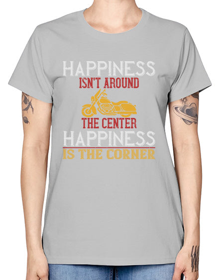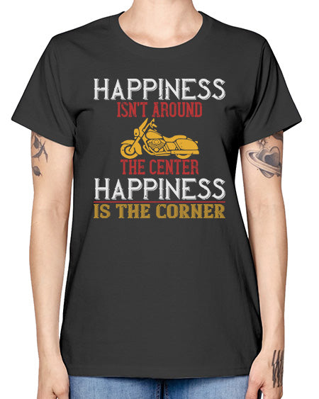 Happiness isnt around the center happiness is the corner 28# - motorcycle- Ladies T-Shirt