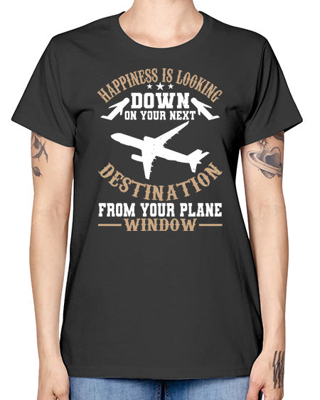 happiness is looking down on your next destination 17# - airplane- Ladies T-Shirt