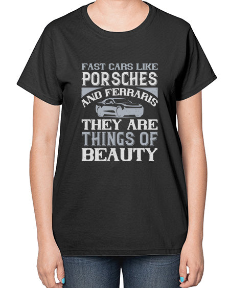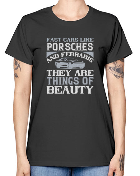 Fast cars like Porsches and Ferraris they are things of beauty 16# - car- Ladies T-Shirt