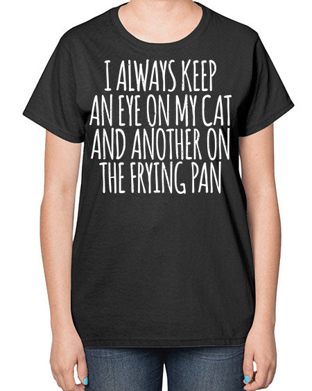 i always keep an eye on my cat and another on the frying pan - cats- Ladies T-Shirt