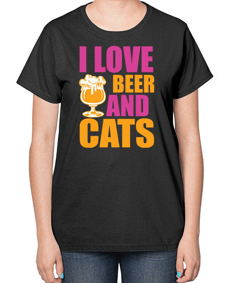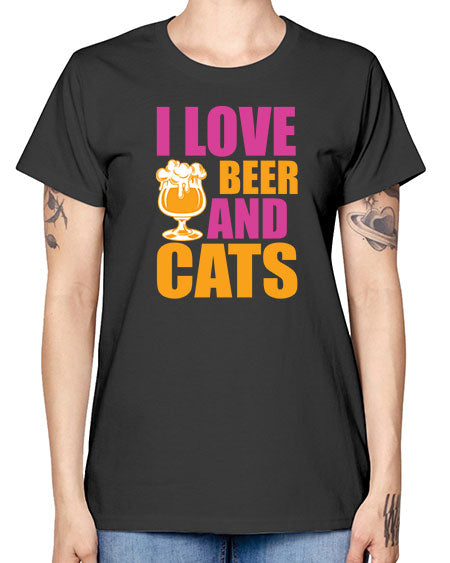 I Love Beer And Cats - cats- Ladies T-Shirt