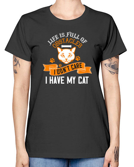 life is full of obstacles idont care ihave my cat Style 66# - cats- Ladies T-Shirt