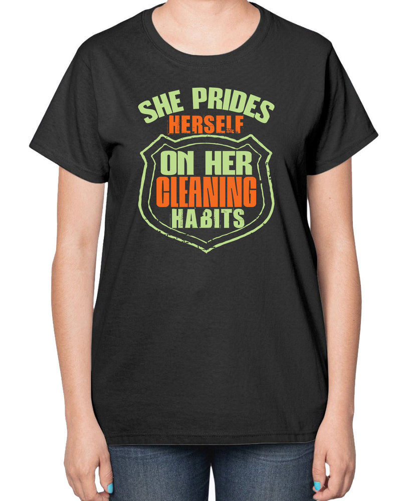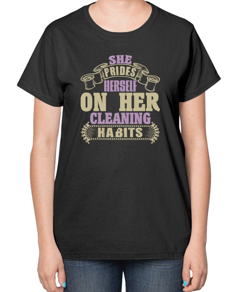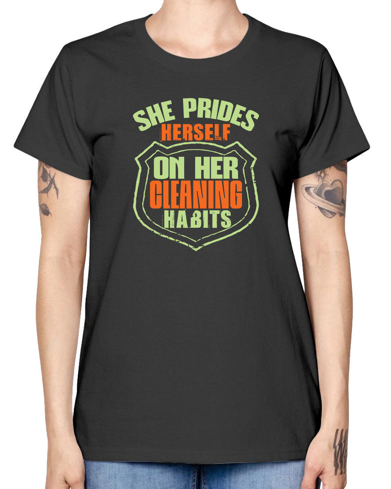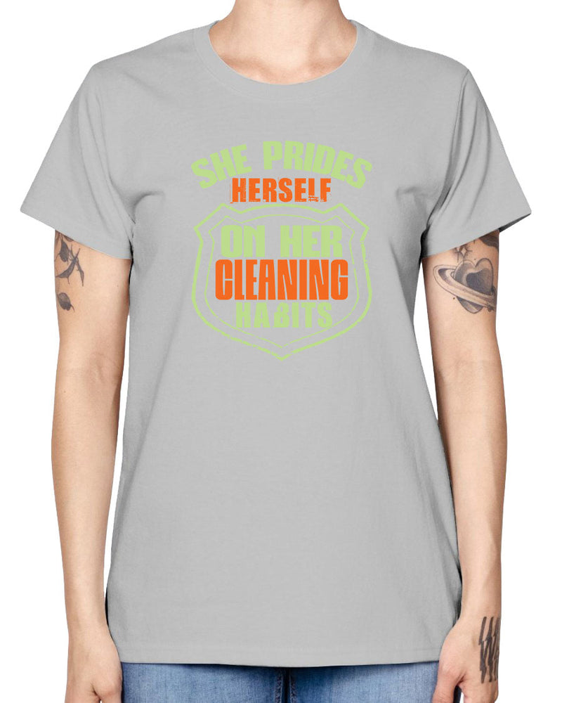 she prides hereself on her cleaning habits 2 - Cleaner- Ladies T-Shirt