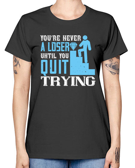Youre never a loser until you quit trying Style 495# - coaching- Ladies T-Shirt