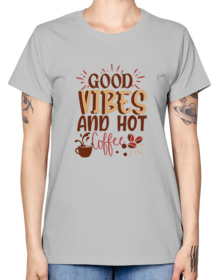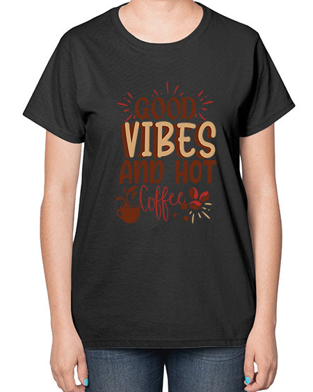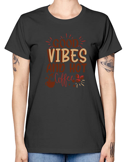 Good Vibes And Hot Coffee 1007# - coffee- Ladies T-Shirt