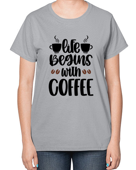 life begins with coffee 1300# - coffee- Ladies T-Shirt