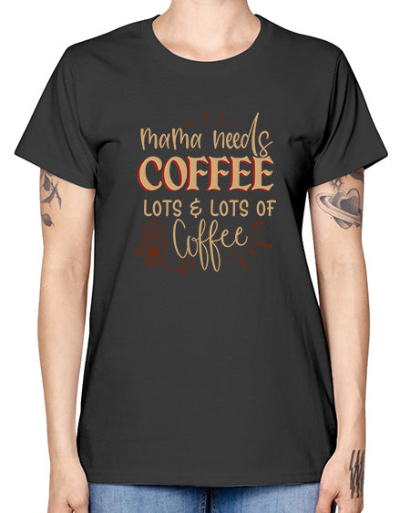 mama needs coffee lots lots of coffee 327# - coffee- Ladies T-Shirt