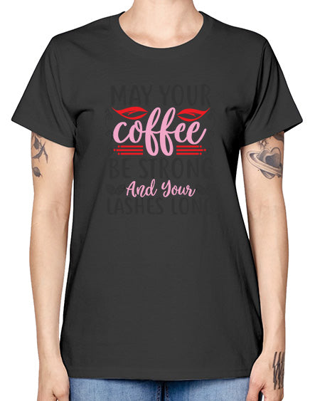 may your coffee be strong and your lashes long 1378# - coffee- Ladies T-Shirt