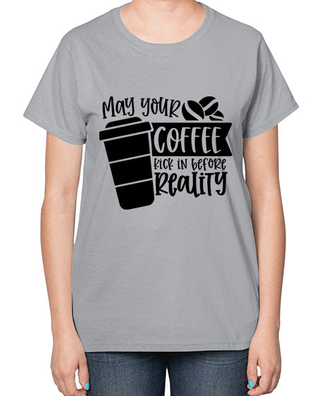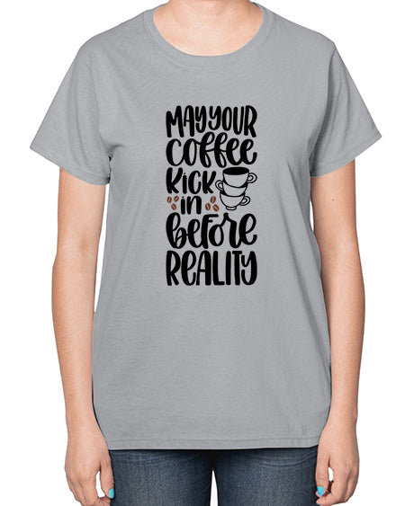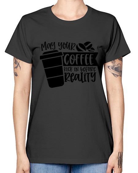 may your coffee kick in before reality 1383# - coffee- Ladies T-Shirt