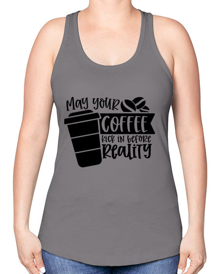may your coffee kick in before reality 1383# - coffee -Racerback Tank