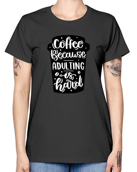coffee because adulting 749# - coffee- Ladies T-Shirt