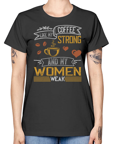 i like my coffee strong and my women weak 225# - coffee- Ladies T-Shirt