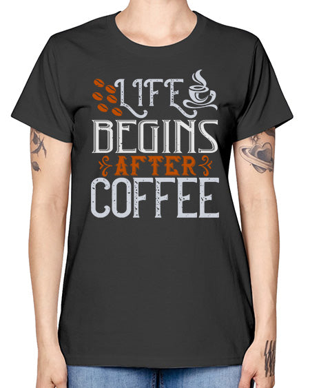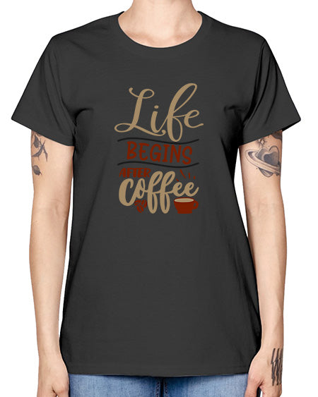 life begins after coffee 309# - coffee- Ladies T-Shirt