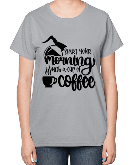 start your morning with a cup of coffee 1572# - coffee- Ladies T-Shirt