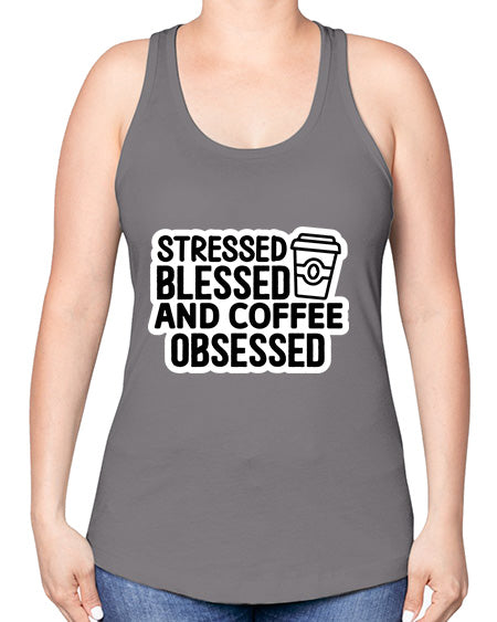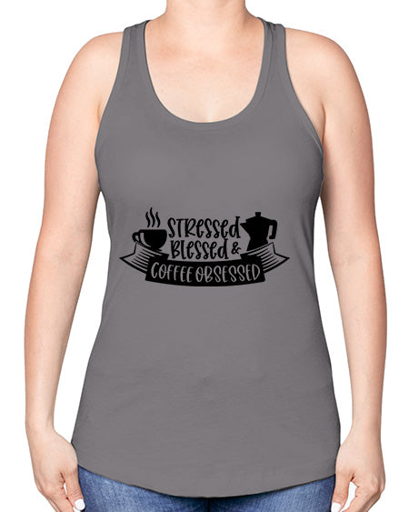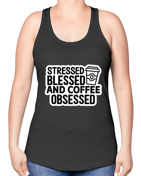 stressed blessed coffee obsessed 1584# - coffee -Racerback Tank