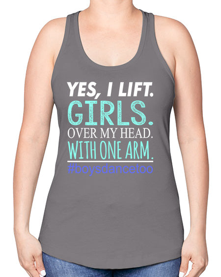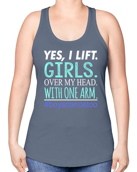 Yes i lift girls over my head with one arm 220# - dance2 -Racerback Tank