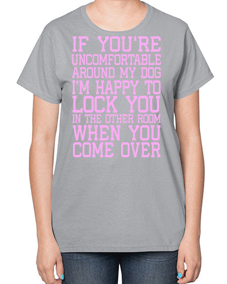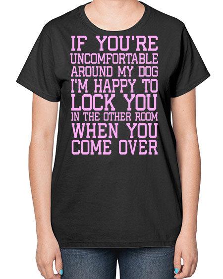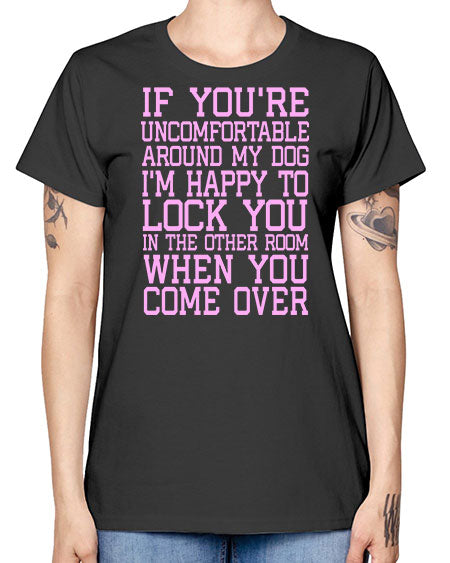 if youre uncomfortable around my dog go in the other room - dogs- Ladies T-Shirt