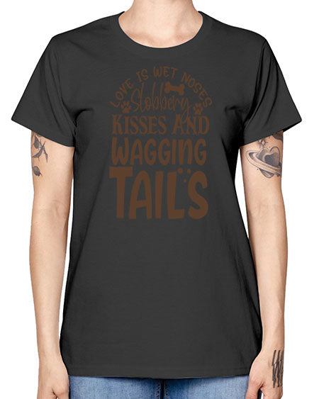 Love Is Wet Noses Slobbery Kisses And Wagging Tails Style 73# - dogs- Ladies T-Shirt
